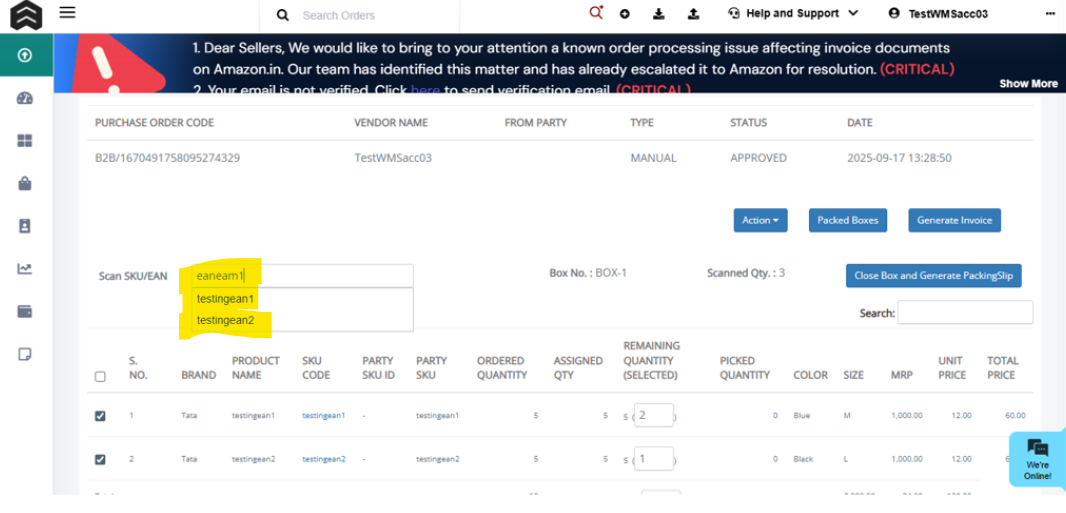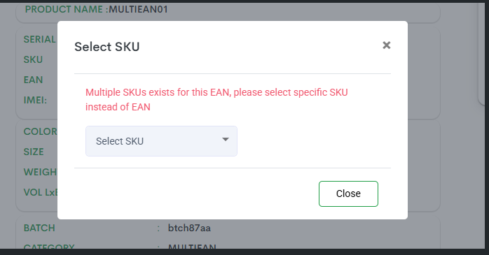 Reduce dispatch errors and improve SKU scanning accuracy for warehouse operations with intelligent multi-SKU support for single EAN codes. When your barcode scanning system detects that a scanned EAN maps to multiple SKUs, an intuitive dropdown menu now appears, allowing precise SKU selection during B2C packing, picking, putaway, GRN, inventory adjustments, and B2B operations.